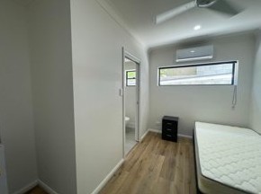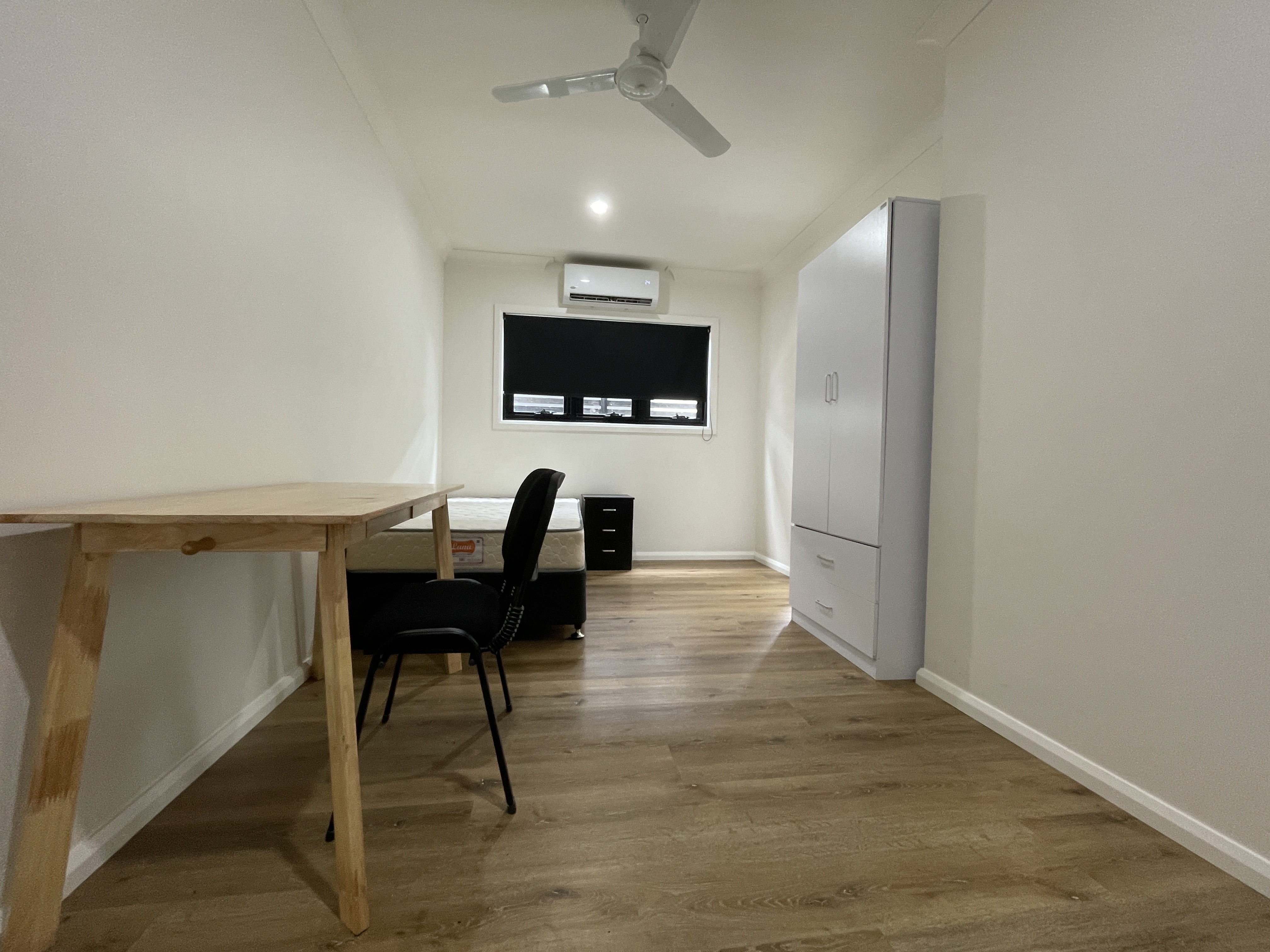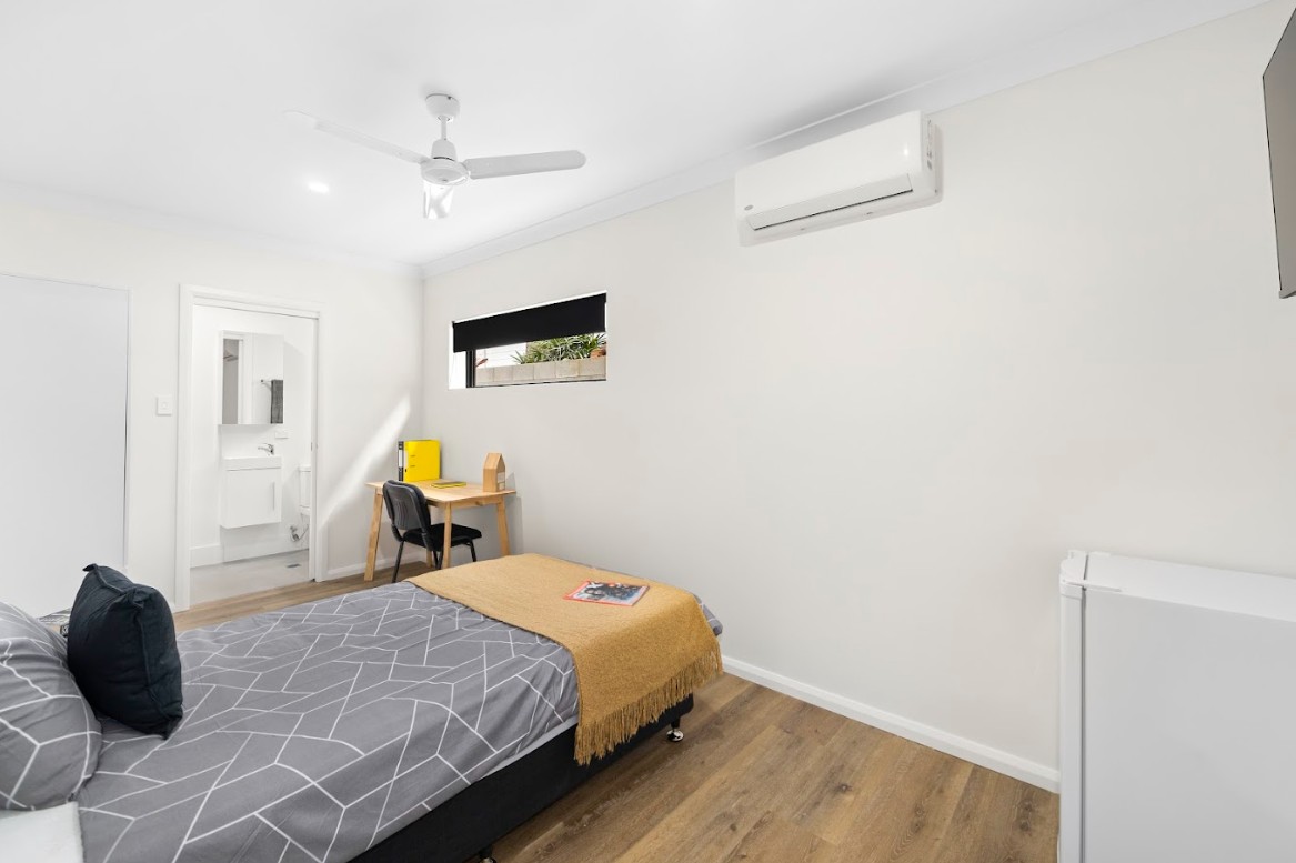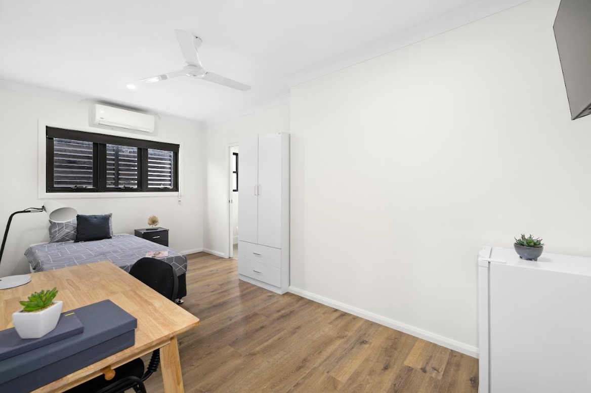 Spacious Room | Private Ensuite Bathroom | Air Conditioning & Ceiling Fan| King Single Bed with bedside table | Study desk & chair | Spacious Wardrobe | Individually lockable room for privacy | Wall-mounted TV | Mini Fridge