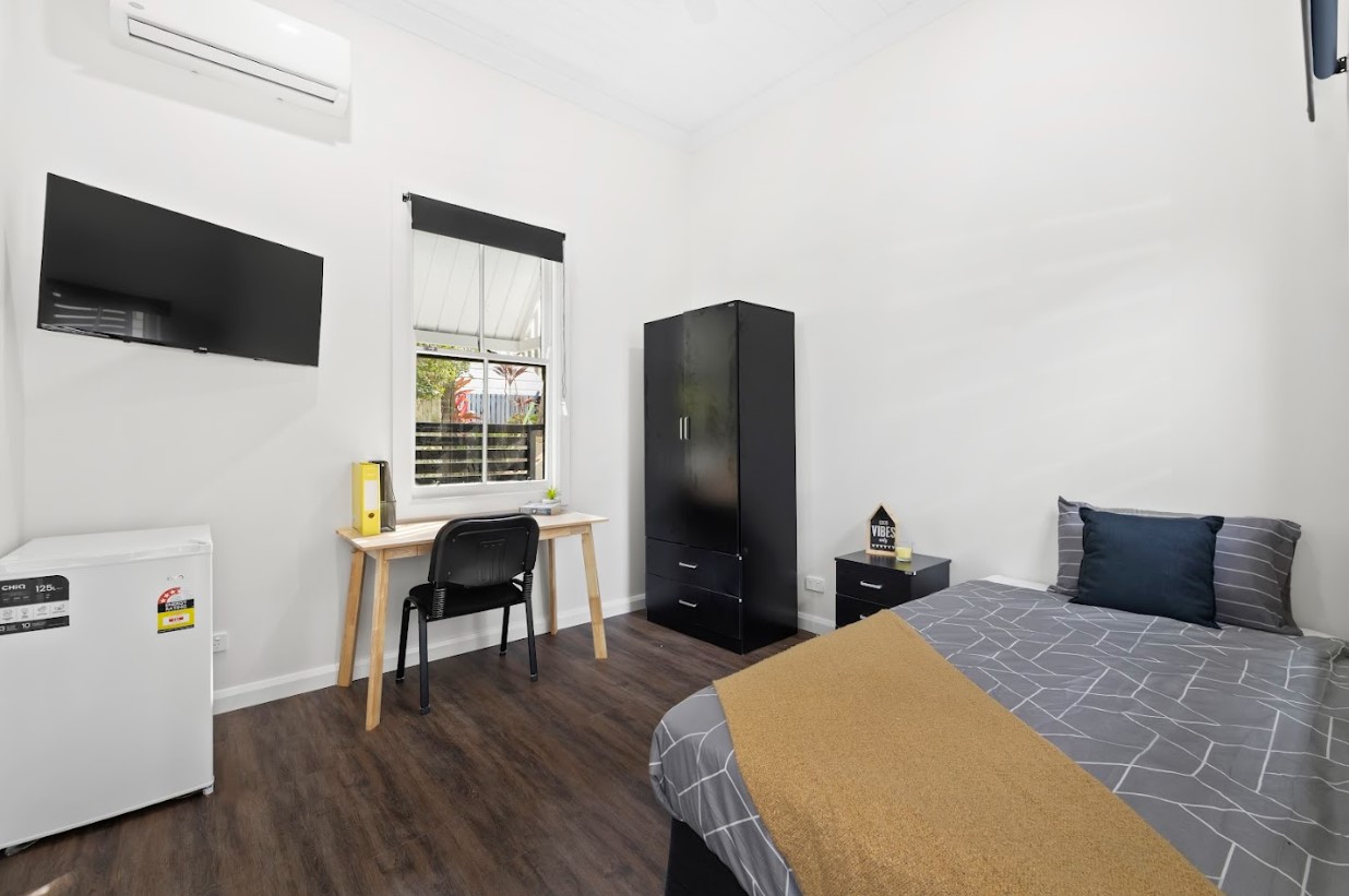 Spacious Room | Private Ensuite Bathroom | Air Conditioning & Ceiling Fan | Bed with bedside table (bed size varies with each room) | Study desk & chair | Spacious Wardrobe | Individually lockable room for privacy | Wall-mounted TV | Mini Fridge