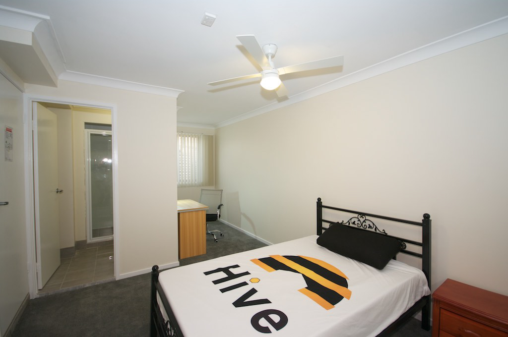 Spacious Room | Ensuite Bathroom | Bed with bedside table (bed size varies with each room) | Study desk & chair | Wardrobe | Individually lockable room for privacy