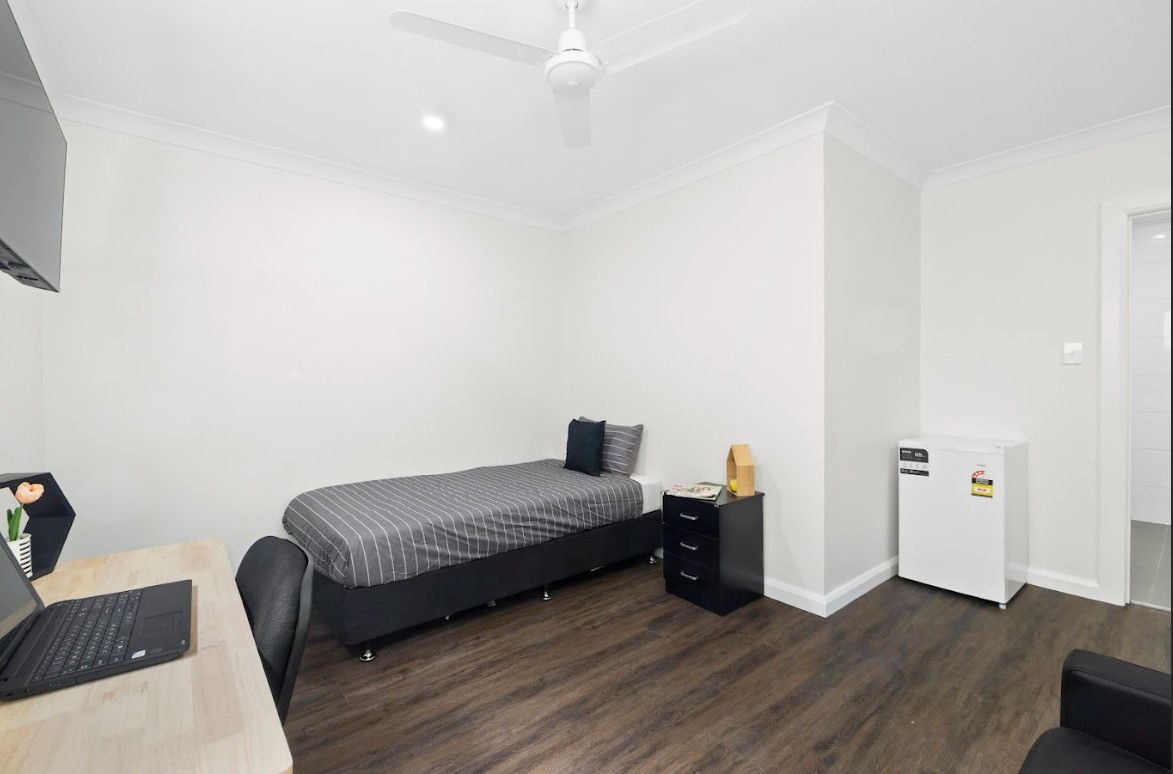 Spacious Room | Private Ensuite Bathroom | Air Conditioning & Ceiling Fan| Bed with bedside table (bed size varies with each room) | Study desk & chair | Spacious Wardrobe | Individually lockable room for privacy | Wall-mounted TV | Mini Fridge | couples accepted for an extra $40 p/w